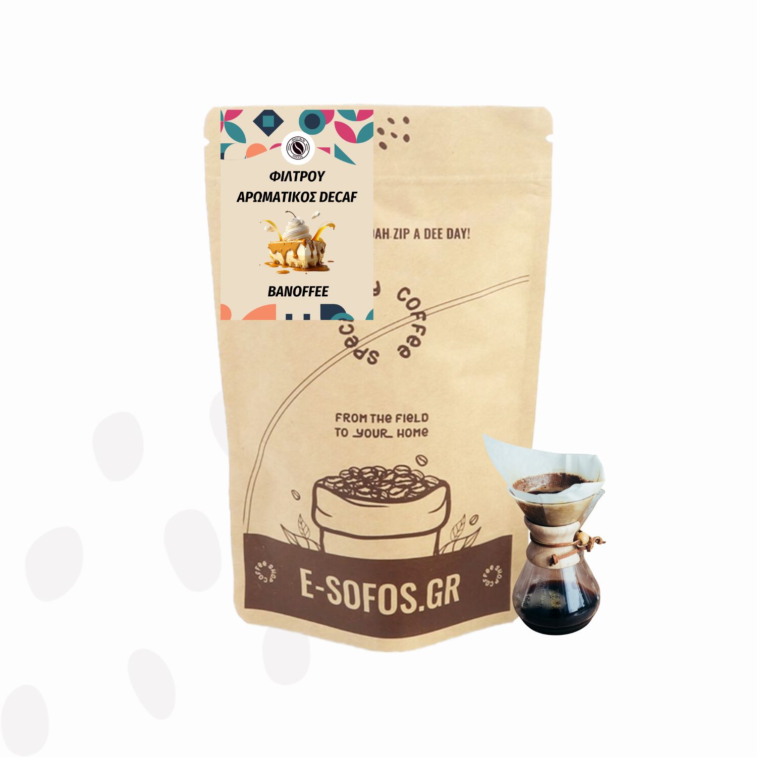 Η αγάπη που δείχνετε καθημερινά για το καφεκοπτείο μας, οδήγησαν το κατάστημα Sofos στη σύνθεση μιας από τις μεγαλύτερες σειρές αρωματικών καφέδων φίλτρου. Διαλέγουμε πάντα τους κορυφαίους κόκκους καφέ με αυστηρές προΰποθέσεις, από 100% ποικιλίες Arabica και τους παντρεύουμε με υψηλής ποιότητας αρωματικά έλαια. Δοκιμάστε ένα απολαυστικό χαρμάνι ντεκαφεϊνέ καφέ φίλτρου με γεύση banoffee.