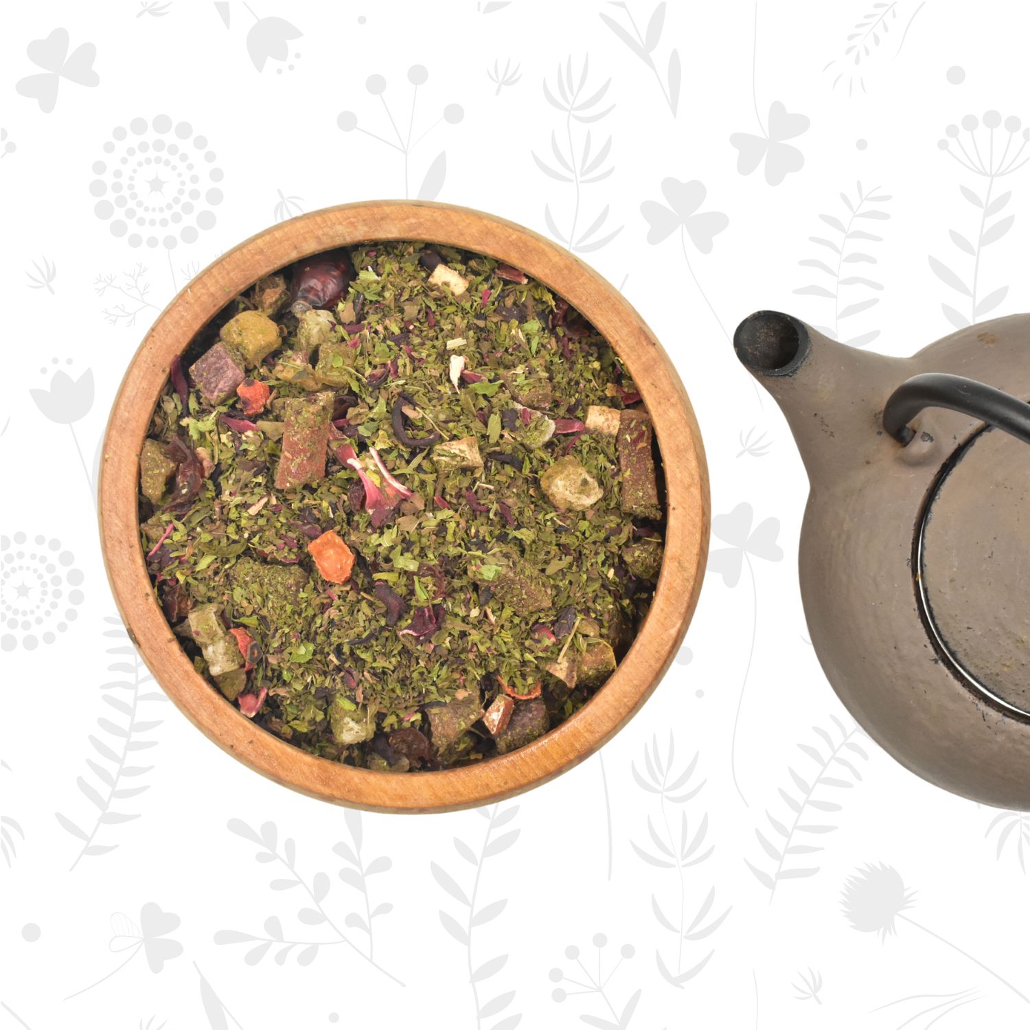 Αυτό το τσάι είναι περισσότερο από ένα ρόφημα. Είναι μια εμπειρία, μια ανακάλυψη, μια διακοπή στο χρόνο. Κάθε γουλιά αποτελεί μια αναζωογονητική στιγμή, μια ανακούφιση από το ζέσταμα, σαν να βρίσκεστε σε έναν ελληνικό κήπο με αρωματικά βότανα και φρούτα, να απολαμβάνετε την αναπνοή του καλοκαιρινού αέρα.